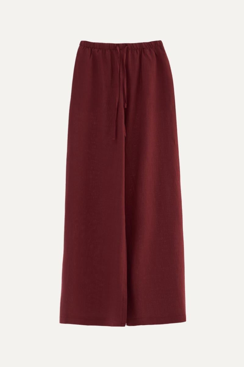 Kadın %100 Keten Ekstra Bol Pantolon Bordo