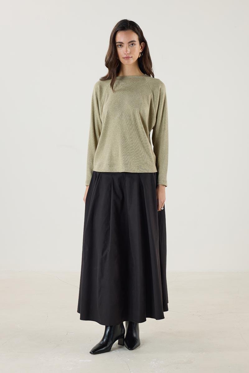 Kadın Bisiklet Yaka Uzun Kollu Yuvarlak Yaka Kısa Triko Bluz Çağla
