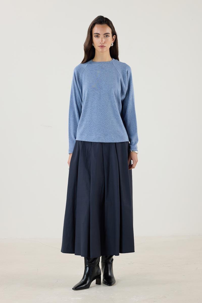 Kadın Bisiklet Yaka Uzun Kollu Yuvarlak Yaka Kısa Triko Bluz Mavi
