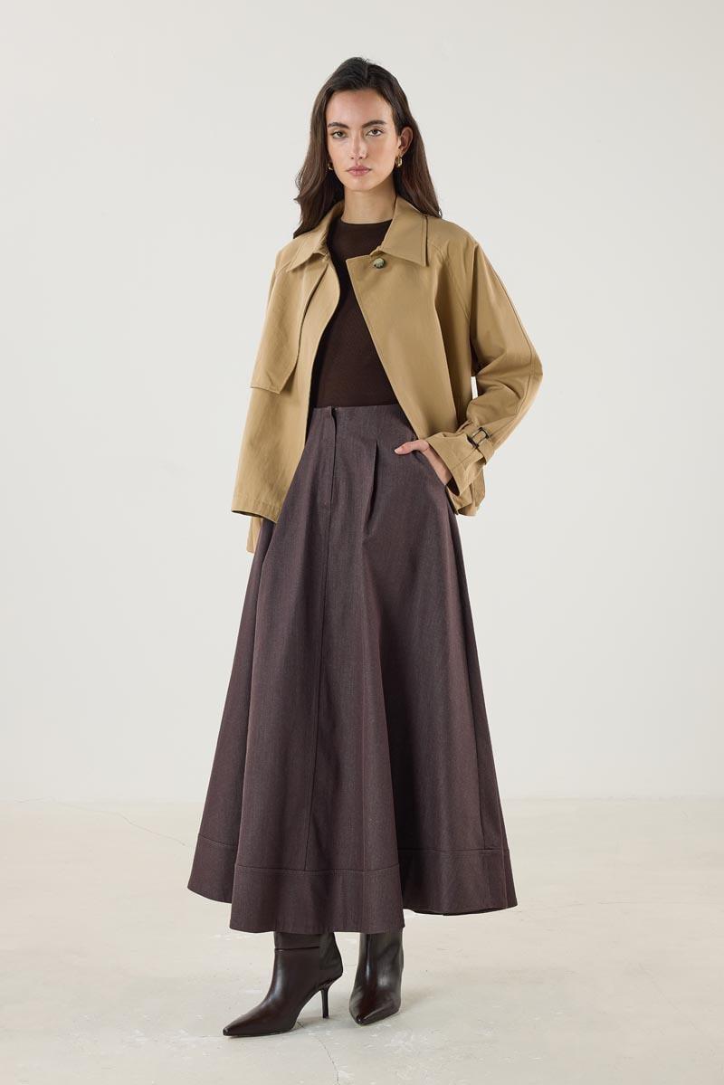 Kadın Gömlek Yaka Uzun Kollu Kemerli Cepli Kısa Trençkot Camel