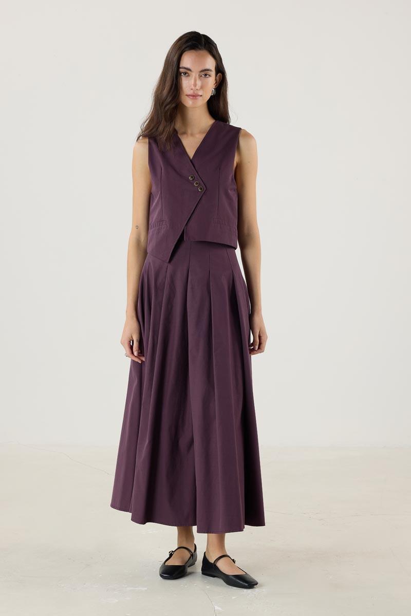Kadın V Yaka Kolsuz Çapraz Kesim Üç Düğmeli Yelek Mürdüm