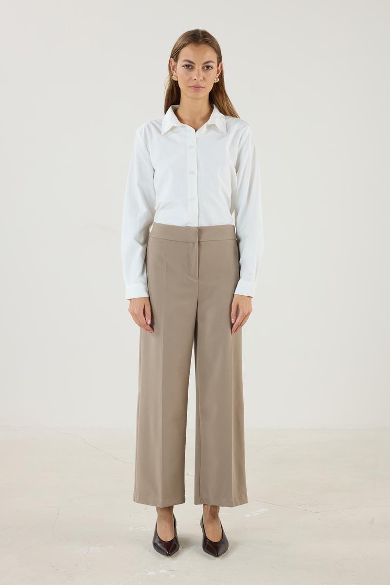 Kadın   Yüksek Bel Bol Paça Culotte Pantolon Açık vizon