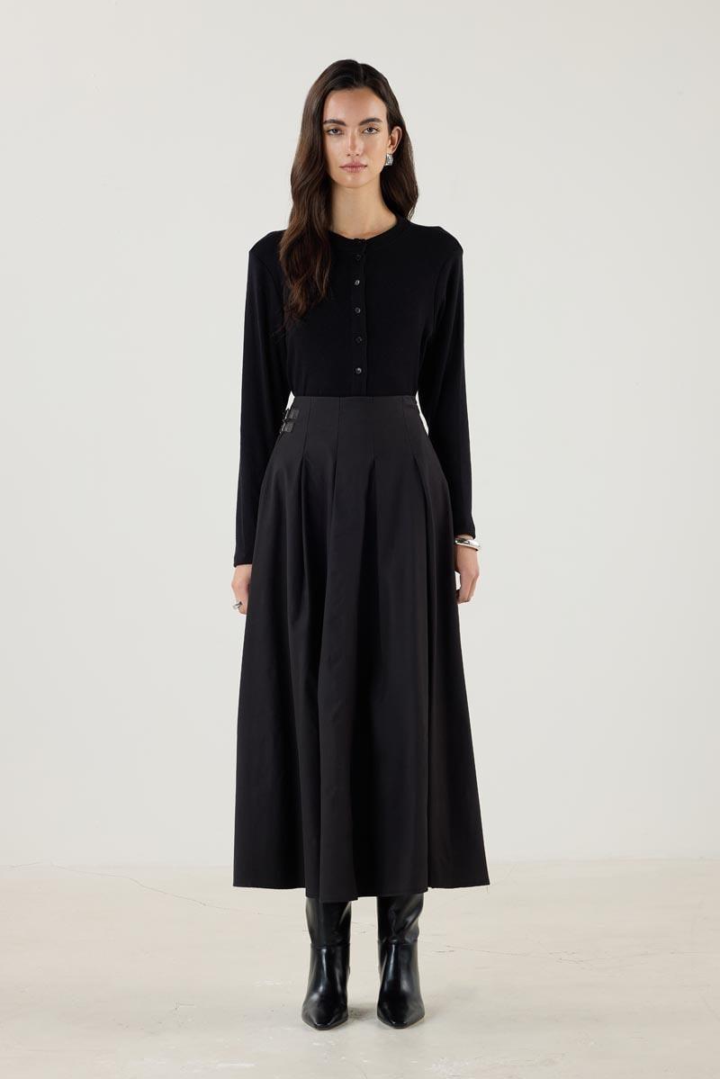Kadın Kemer Aksesuarlı Pileli Etek Siyah