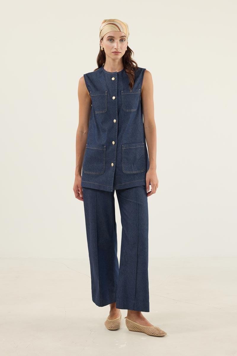 Kontrast Kot Yelek Camel Dikişli, modern tasarımı ve rahat kalıbıyla şıklığı günlük kullanıma taşıyor. %71 kot, %26 PES ve %3 likra karışımından üretilen kumaşı, hem dayanıklı hem de hafif esnek bir yapı sunarak konforlu hareket imkânı sağlar. Bisiklet yaka detayı, minimalist ve zamansız bir görünüm kazandırırken, camel kontrast dikişler modele karakteristik bir stil dokunuşu ekler.