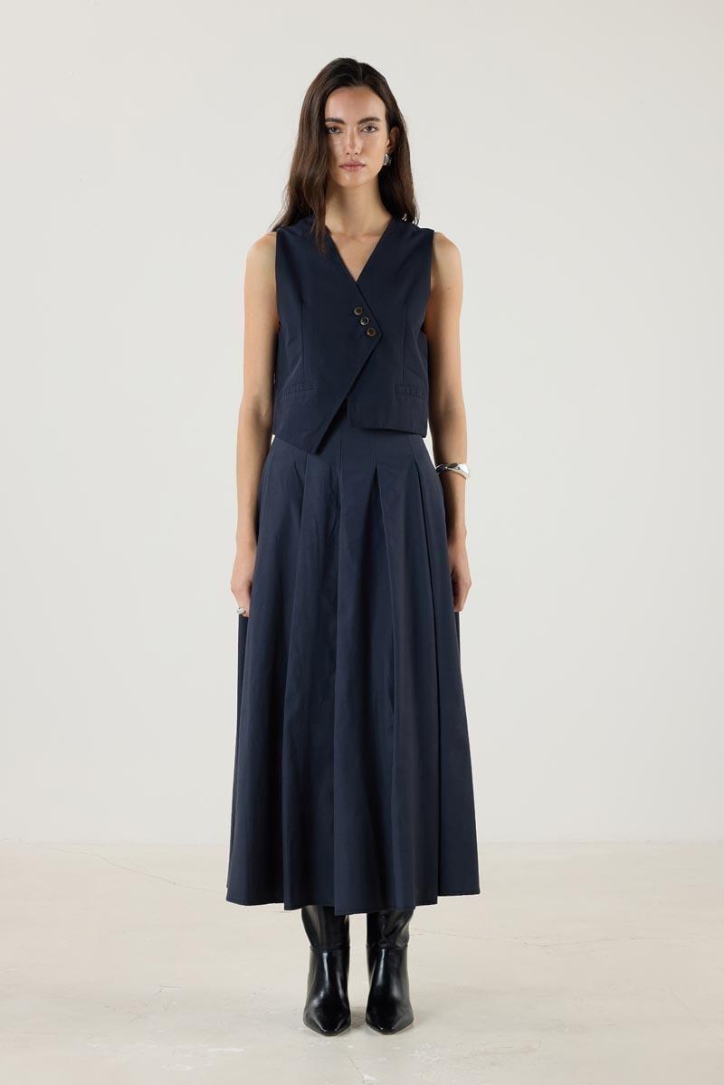 Lacivert V Yaka Yelek, Pileli Etek Takım