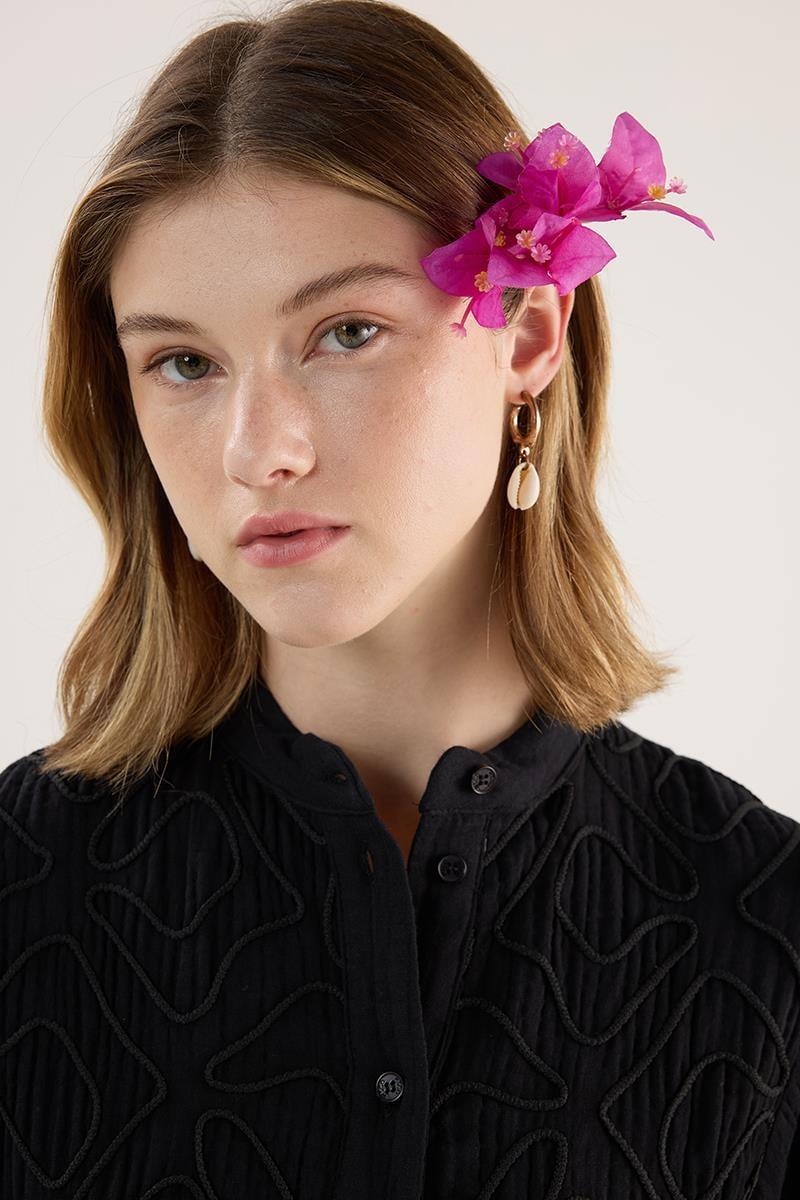 Kadın Hakim Yaka Nakışlı Müslin Elbise Siyah