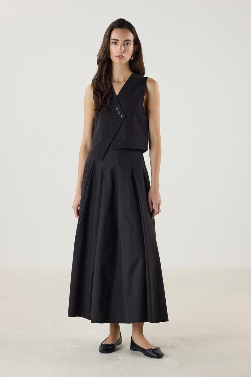 Siyah V Yaka Yelek, Pileli Etek Takım