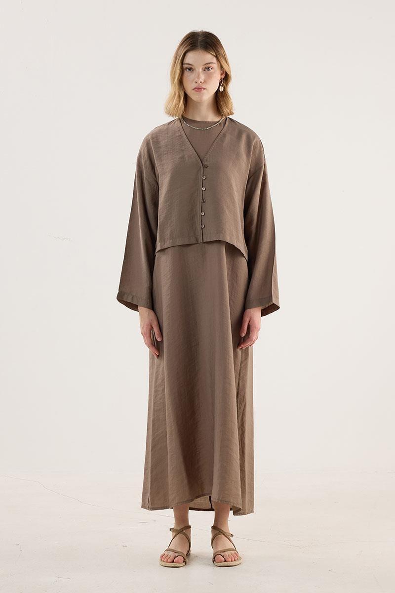 Tensel Kısa Kimono Koyu Vizon