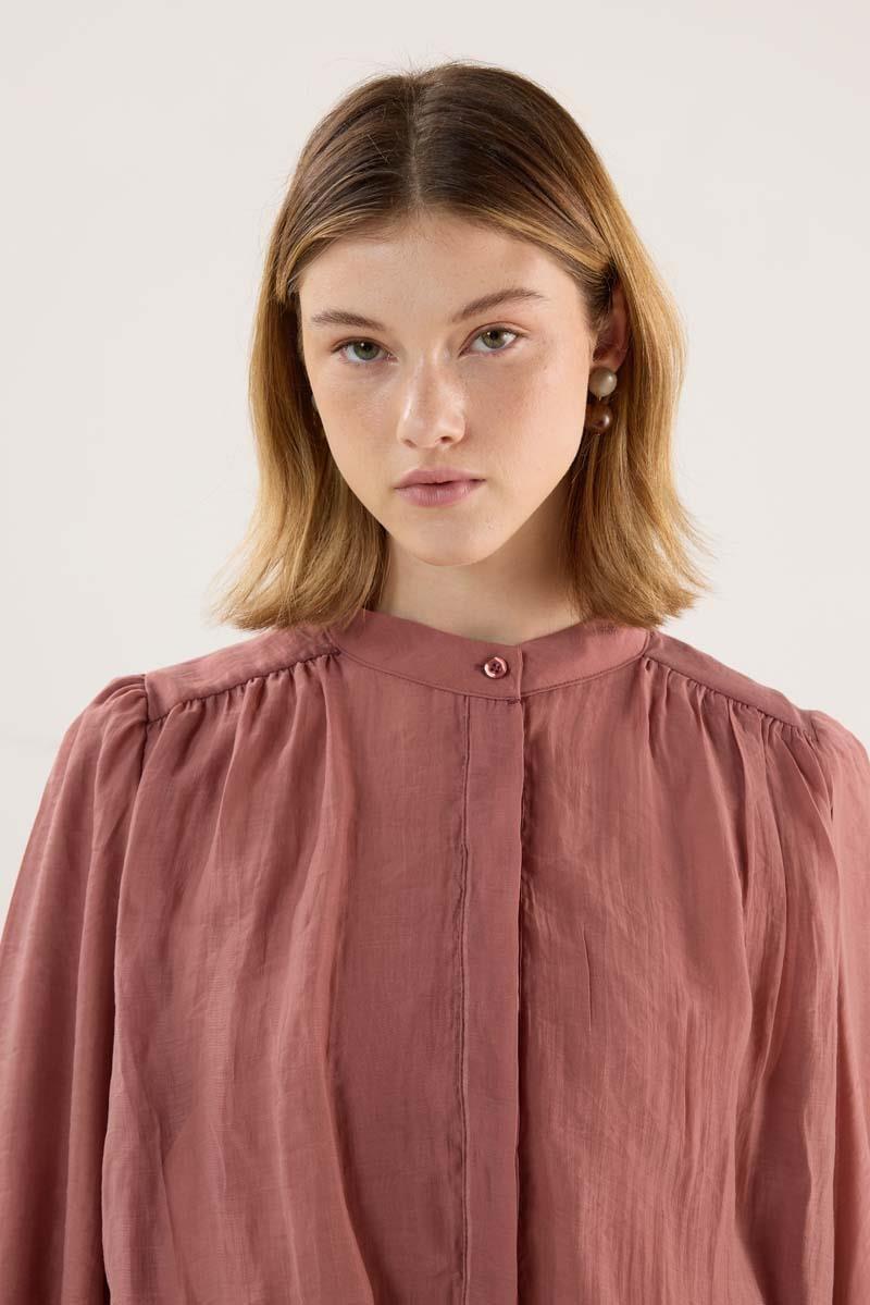 İnce Liyosel Balon Gömlek Gül kurusu