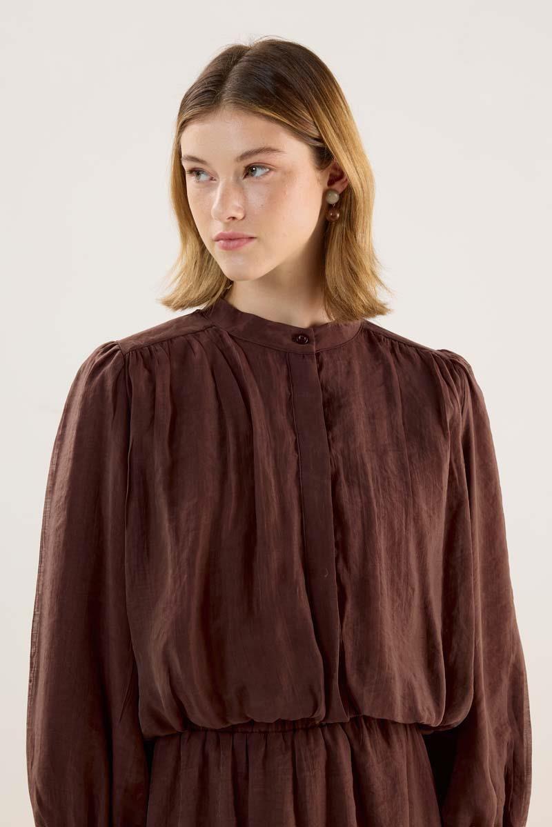 Kadın Hakim Yaka İnce Liyosel Balon Gömlek Kahverengi