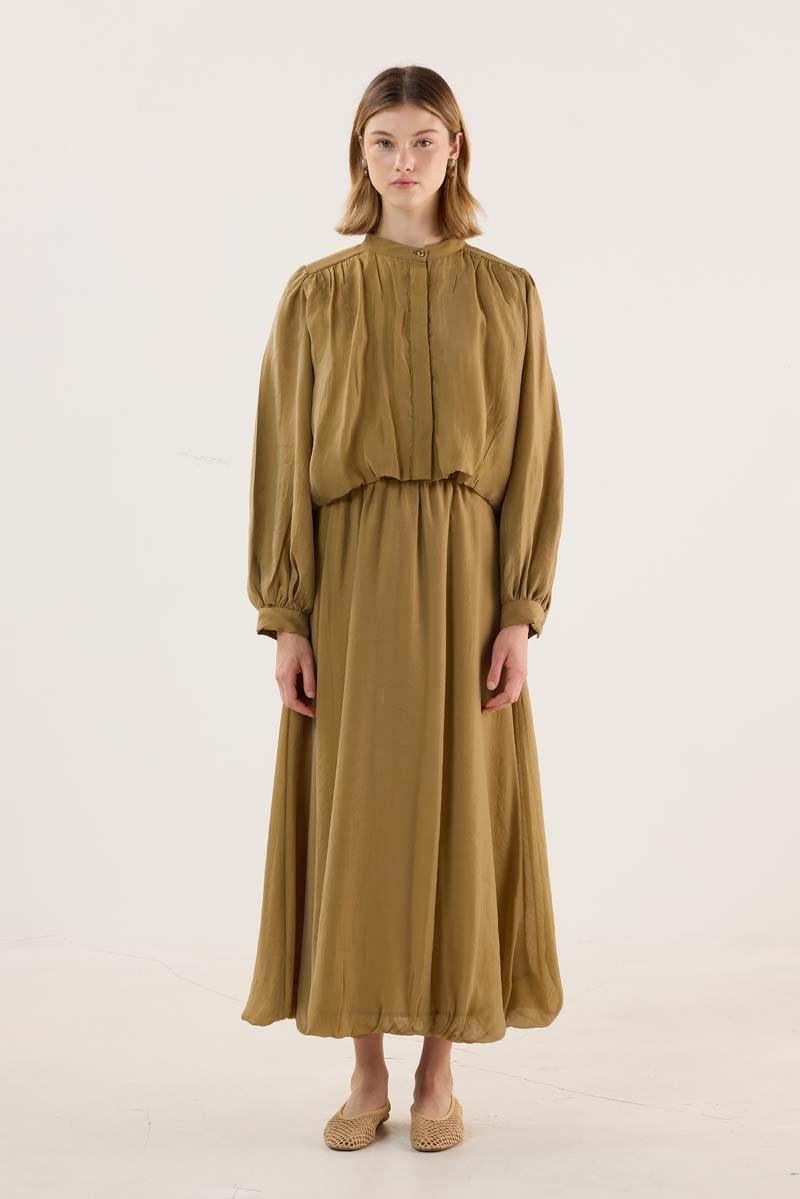 İnce Liyosel Balon Gömlek Zeytin Yeşili