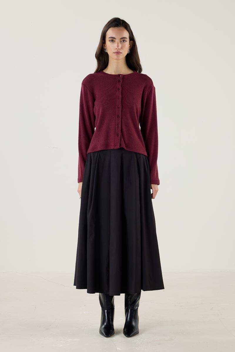 Kadın Bisiklet Yaka Uzun Kollu Yuvarlak Yaka Kısa Triko Hırka Bordo
