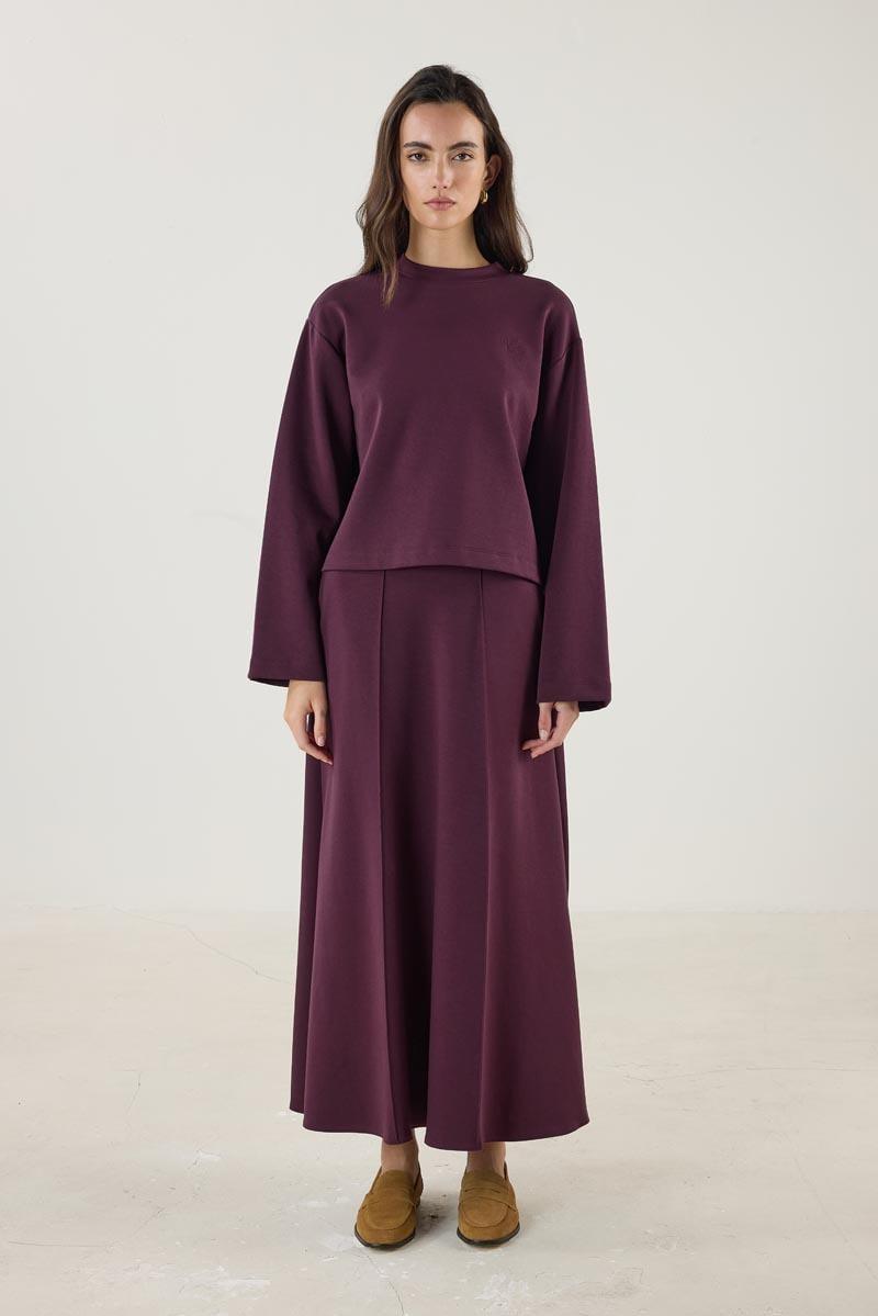 Kadın Yuvarlak Yaka Uzun Kollu Yuvarlak Yaka Nakış Detaylı Kısa Sweatshirt Bordo