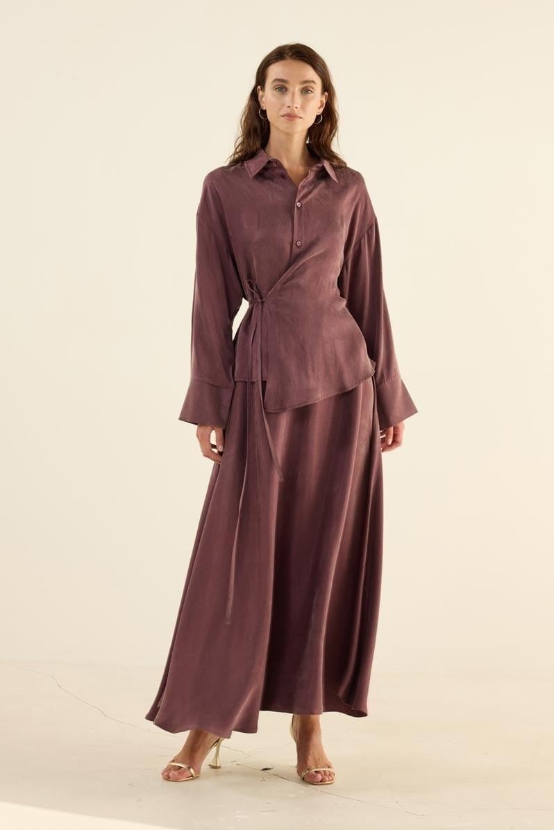 Mürdüm Kupra İpek Gömlek, Etek Takım