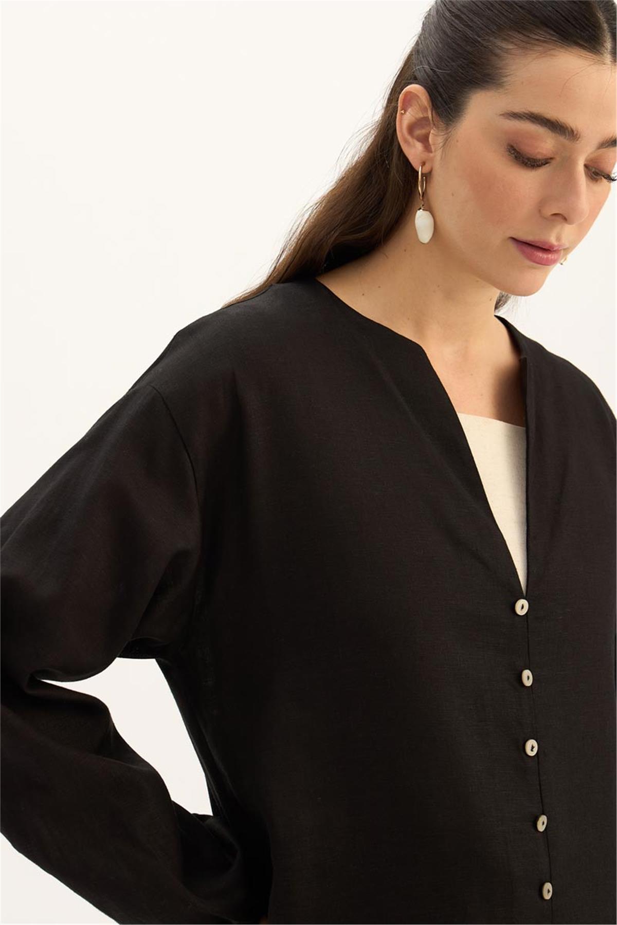 Kadın V Yaka Sedef Düğmeli Bluz Siyah